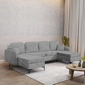 Ecksofa mit Schlaffunktion U-form LEO Beige Velvet