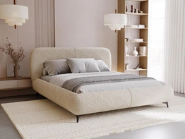 Modernes Polsterbett mit Stauraum Japandi Stil gepolstertes Kopfteil 180x200 Beige