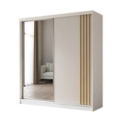 Kleiderschrank mit Spiegel und Lamellen MALTA Weiß + eiche