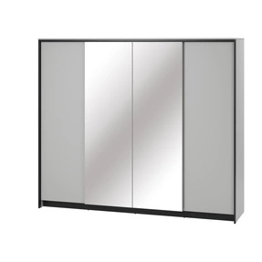 Kleiderschrank MIYA viertürig mit zwei Spiegel Grau/Schwarz