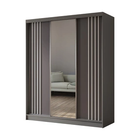 Kleiderschrank mit Spiegel und Lamellen MALTA Grau + Weiß
