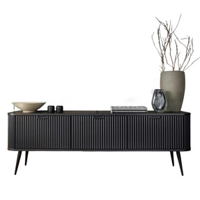Highboard mit Lamellen auf hohen Beinen CARLO Schwarz