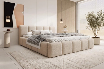Das Wolkenbett zeichnet sich primär durch seine unverwechselbare Ästhetik und das extrem luxuriöse Design aus. Im Gegensatz zu herkömmlichen Möbeln ist hier jedes einzelne Element weich gepolstert, um harte Kanten zu minimieren. Die visuelle Raffinesse entsteht oft durch eine ausgeklügelte "Schwebeoptik", die das Bett im Raum fast schwerelos wirken lässt. Viele Modelle setzen auf Details wie tiefe Polsterkassetten, die einen faszinierenden und modernen 3D-Effekt erzeugen. Die verwendeten Stoffe, wie etwa Bouclé oder Samt, sind ein haptischer Genuss für die Haut. Dank moderner Fertigung verfügt der Bezug oft über eine spezielle Beschichtung, die Flüssigkeiten einfach abperlen lässt. Diese Kombination aus optischer Eleganz und praktischer Widerstandsfähigkeit macht das Möbelstück absolut einzigartig im Handel.