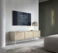 TV-Kommode mit Regalen MARIA Eukalyptus / Scandi Fischgrät