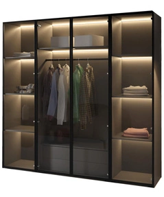 Eleganter Kleiderschrank mit LED Licht Glasfronten Graphit STELLS