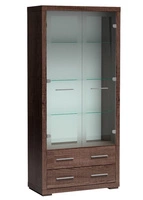 Glasvitrine mit 2 Schubladen ARIA Eiche Santana Dunkel