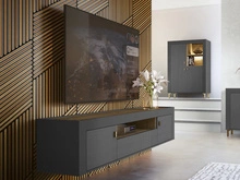 Kommode mit elektrischem Kamin TRENDS Eiche-Whisky/ Schwarz Matt