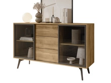 Vitrine mit 2 Schwebetüren und 2 Schublade Eiche SLOW