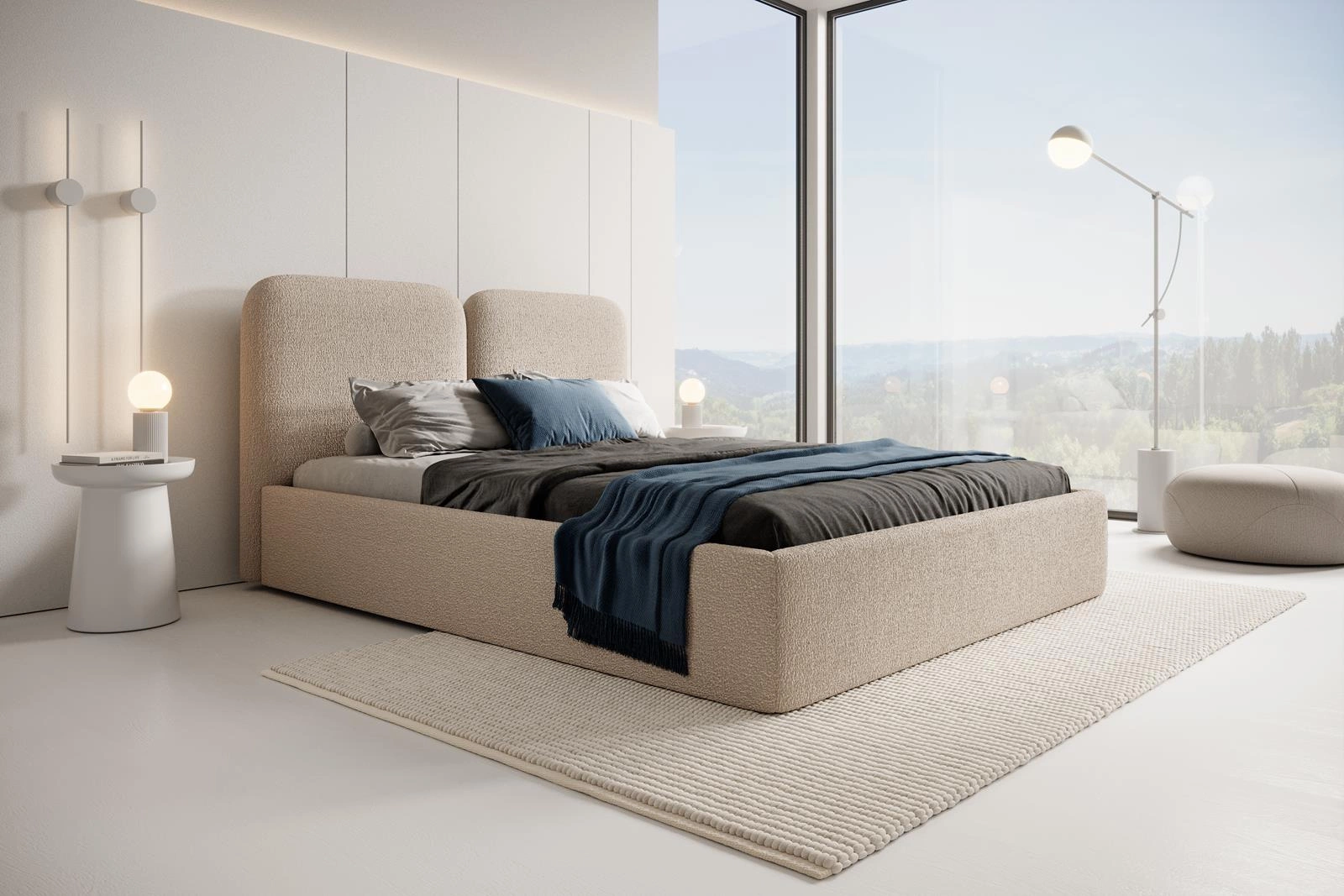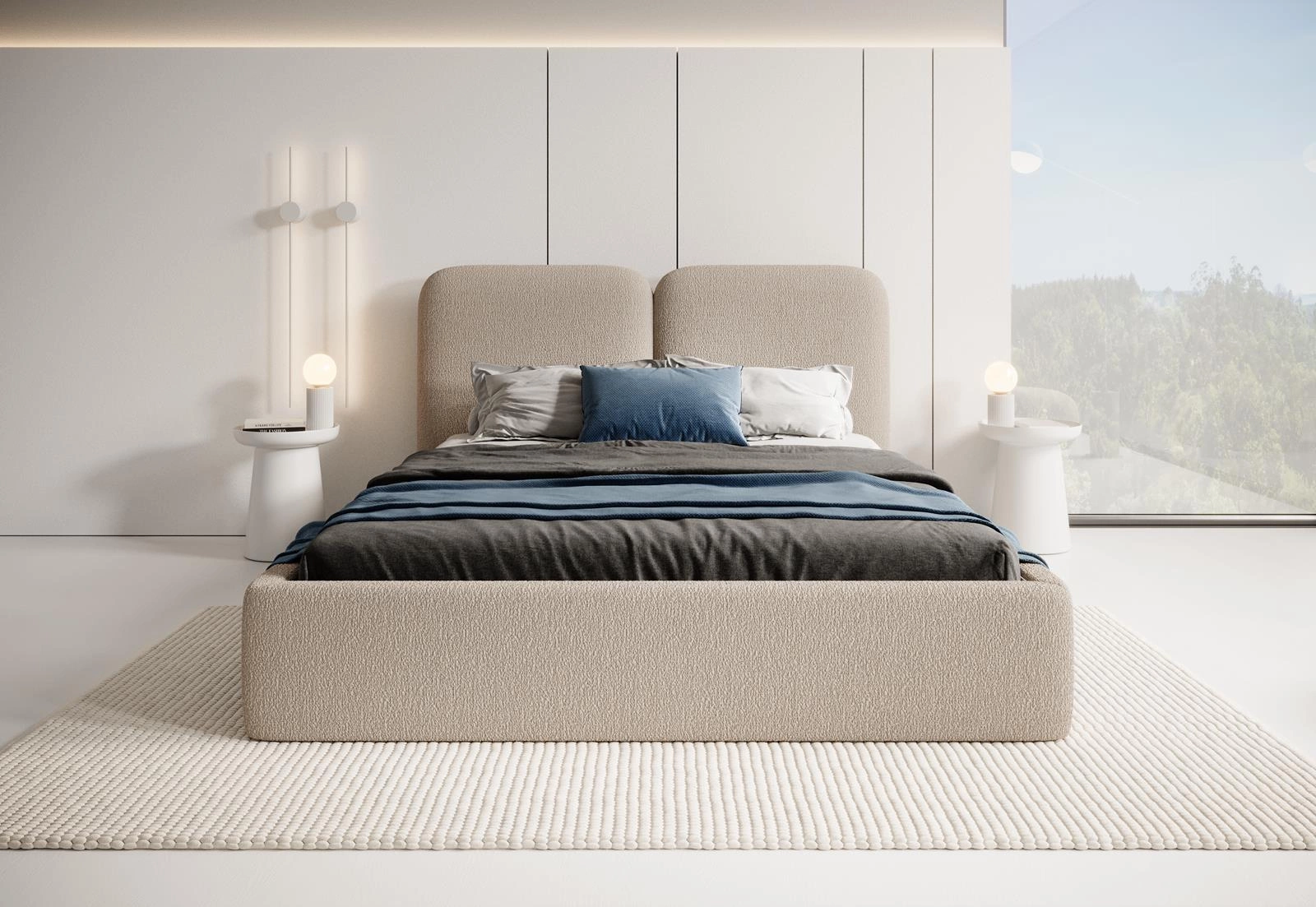 Doppelbett mit Kopfstütze 120x200 Beige BUBBLE III