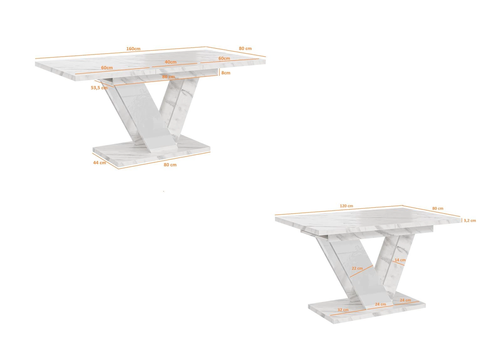 - Länge mit Einlegeplatte(n): 160 cm,