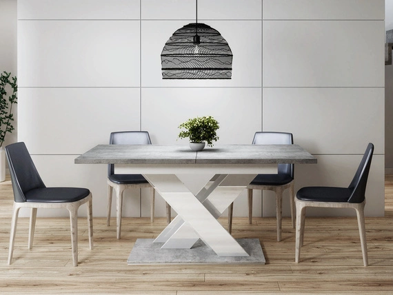 Esszimmertisch ausziehbar 140-180 cm Weiß + Beton