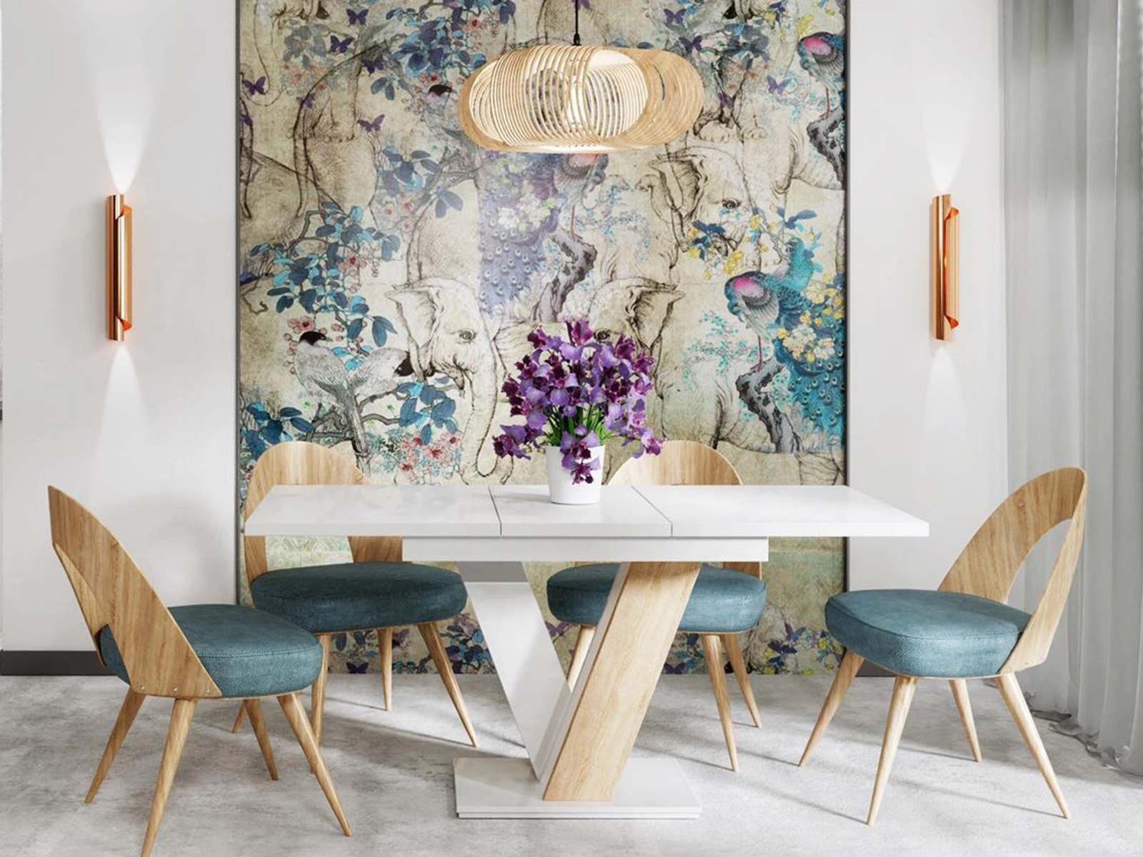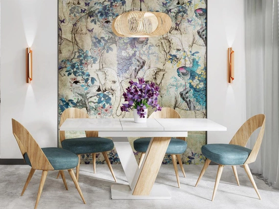 Esszimmertisch ausziehbar 140-180 cm Weiß + Sonoma