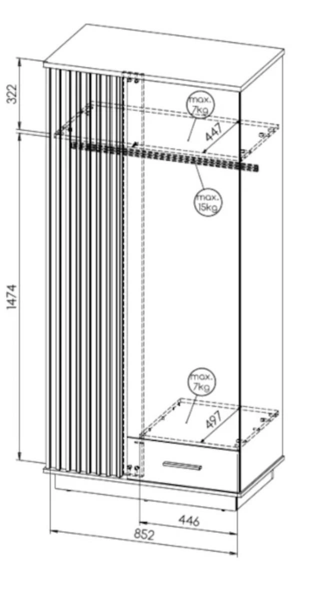 Kleiderschrank zwei Türen und 1 Schublade PUCCI eiche wotan/schwarz