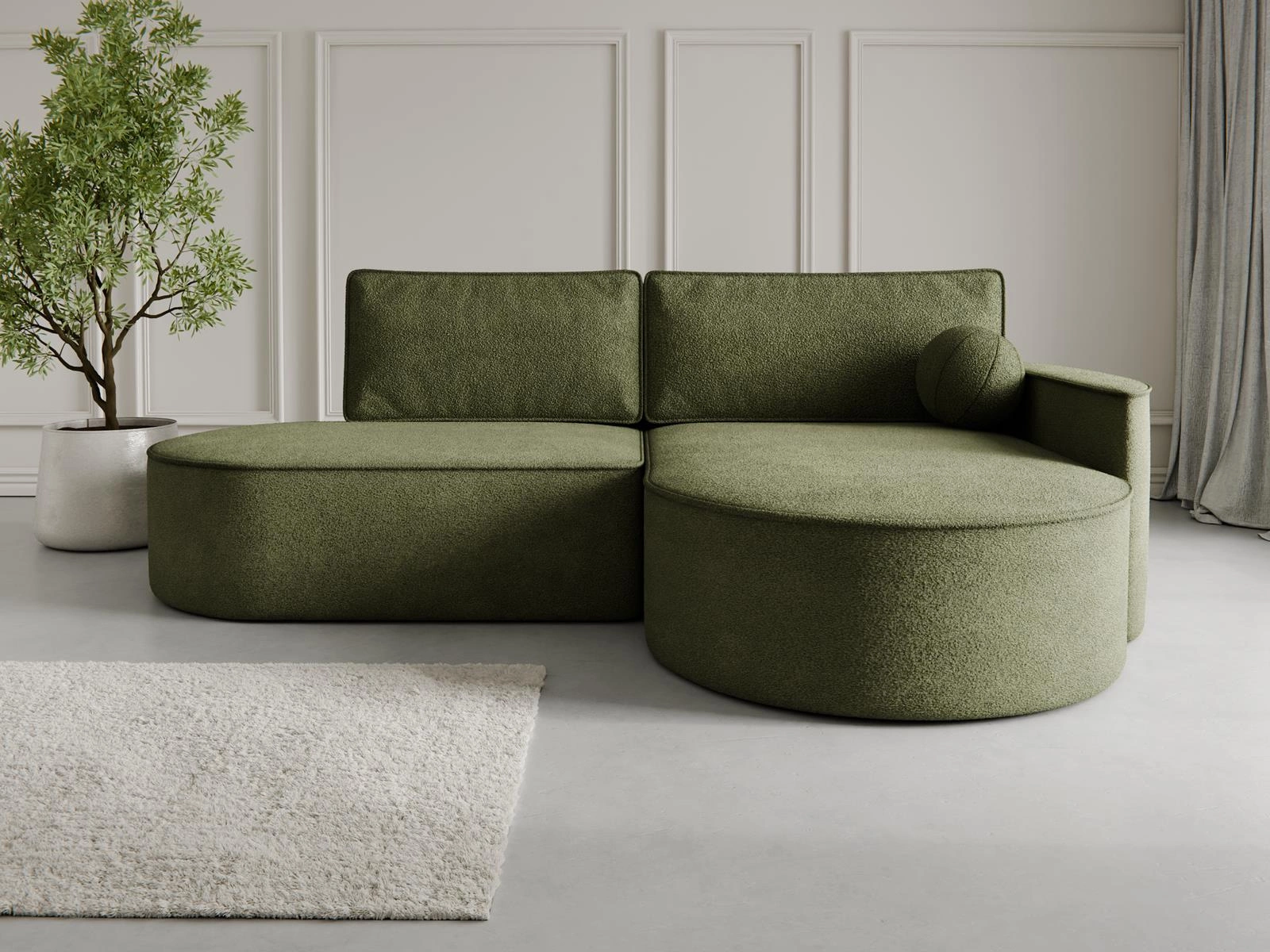 Luxuriöses Ecksofa L Rundes Design Highlight Olivgrün MORENO