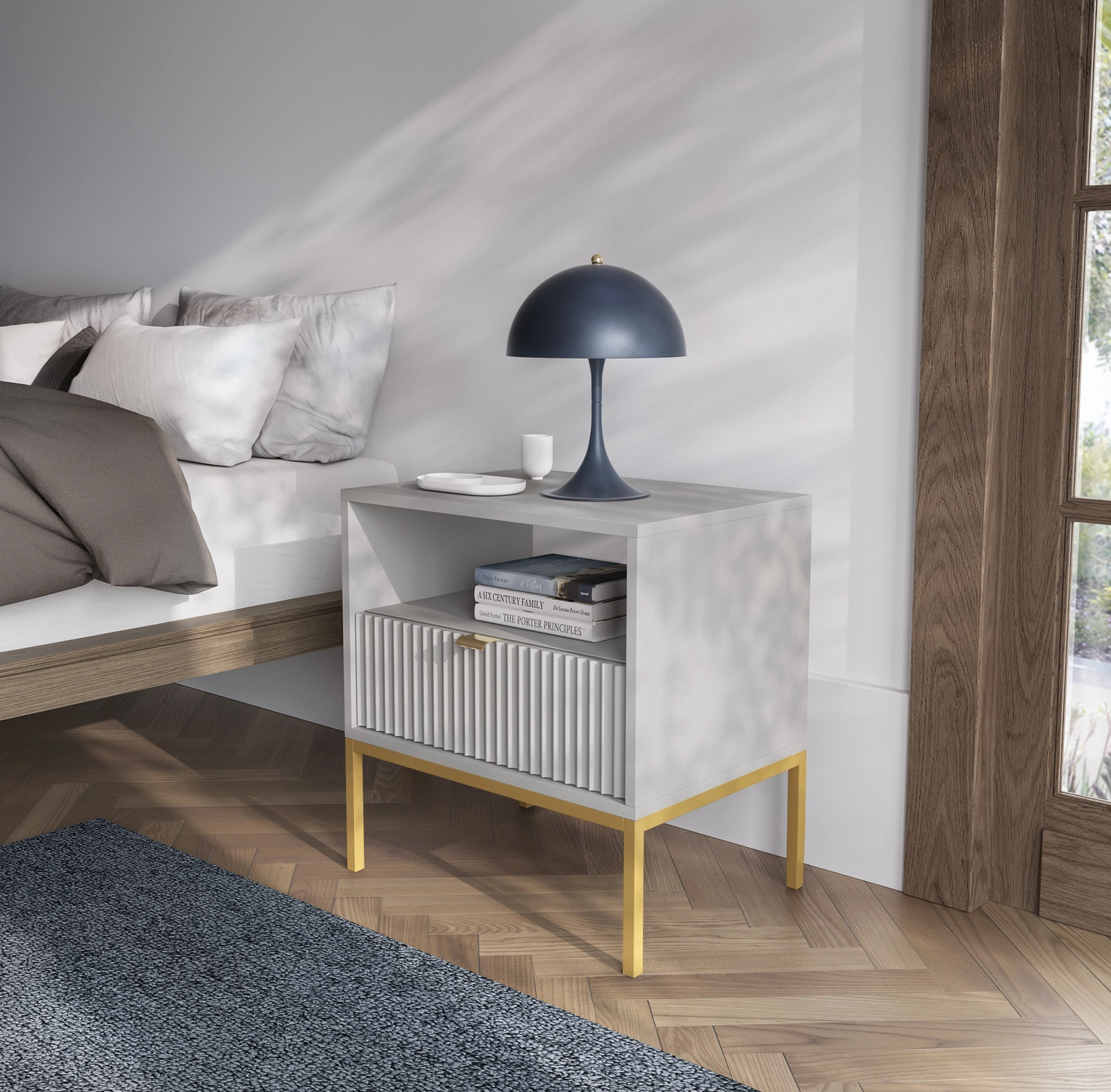 Nachttisch mit Schublade goldene Griffe NANCY Grau