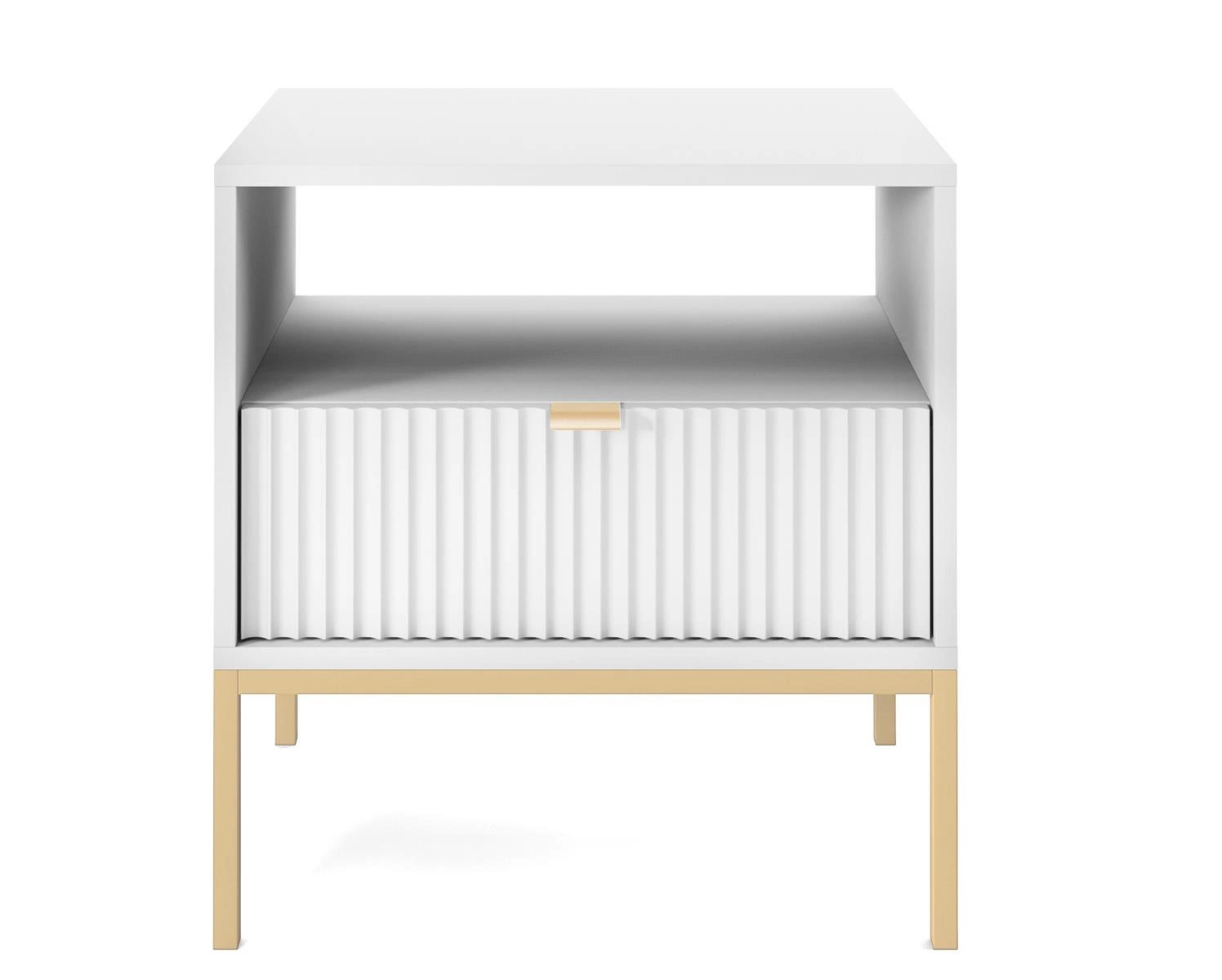 Nachttisch mit Schublade goldene Griffe NANCY Weiß