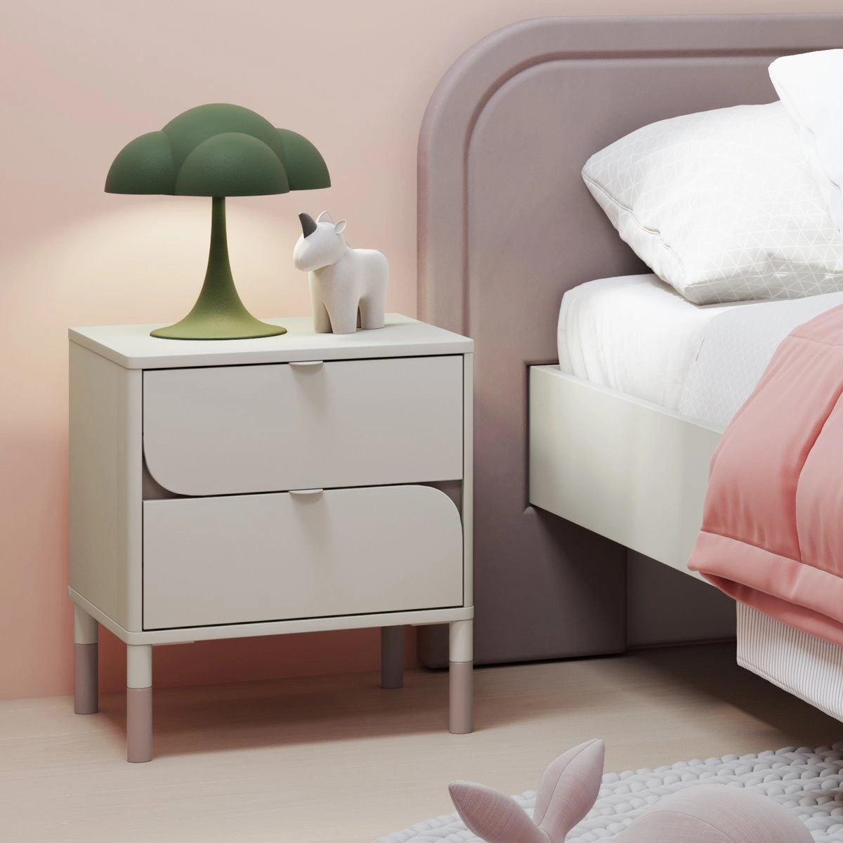 Nachttisch mit zwei Schubladen JUNA Beige