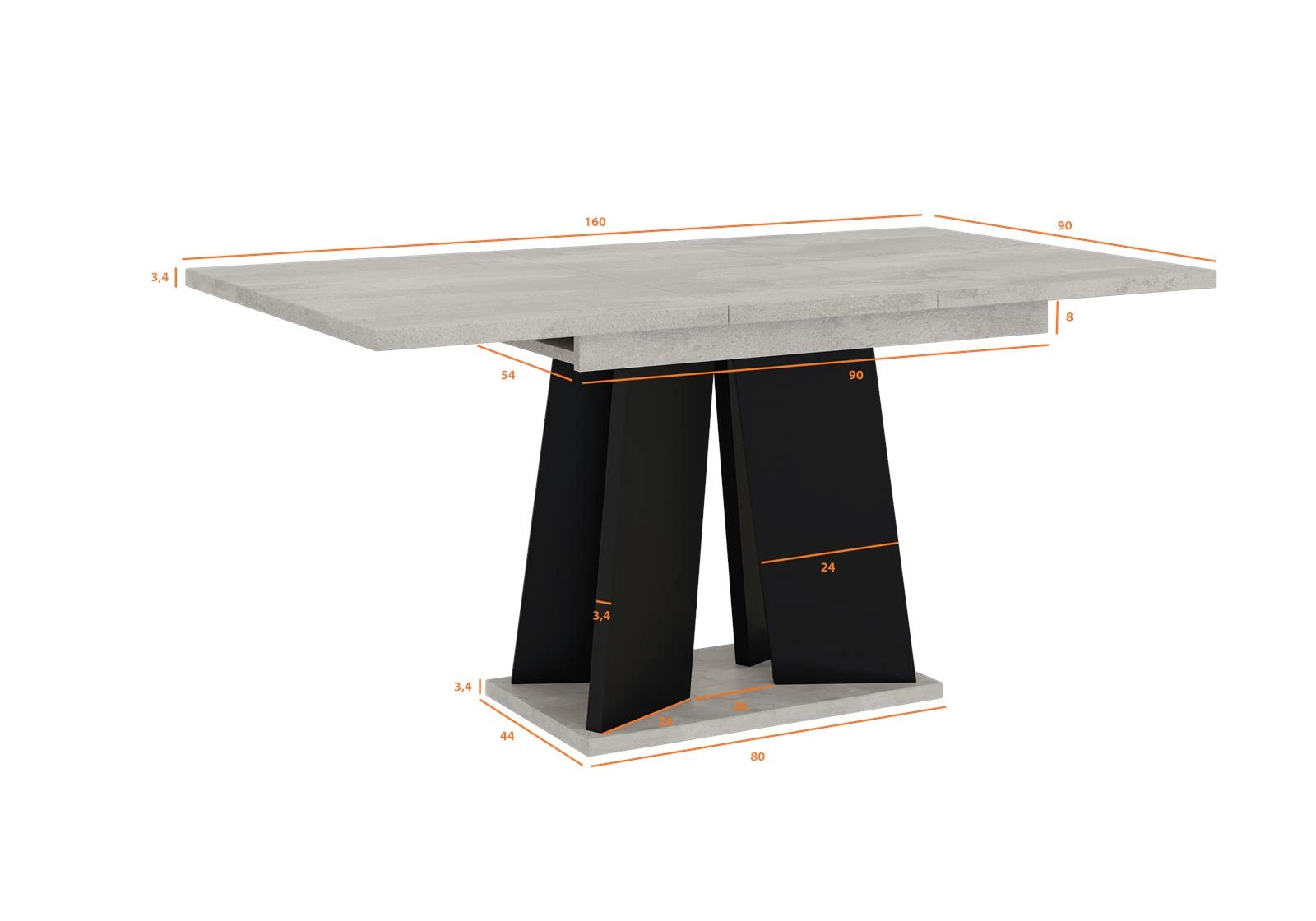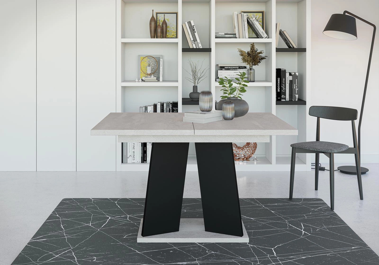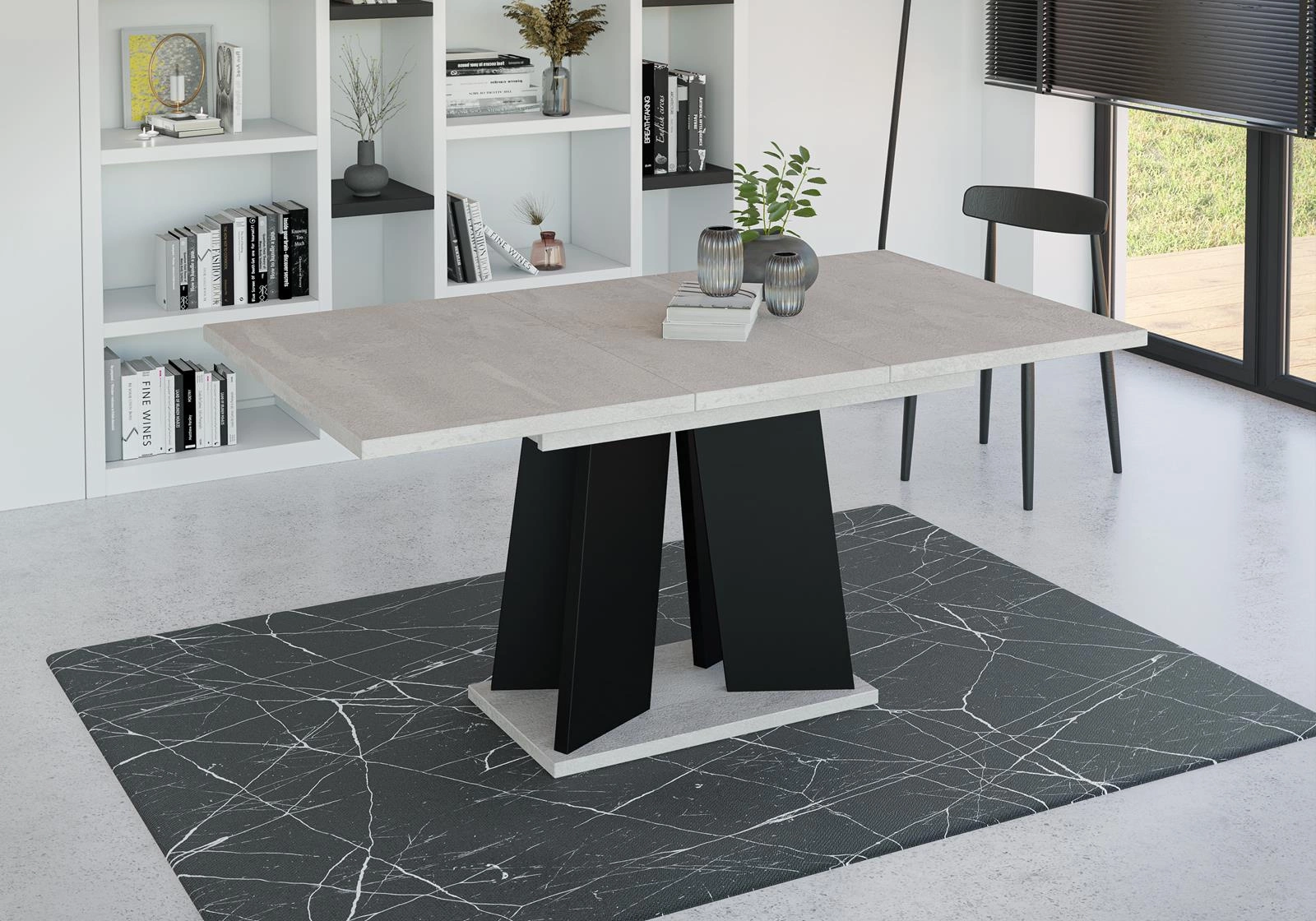 Ausziehbare Esstische SANA Beton+Schwarz