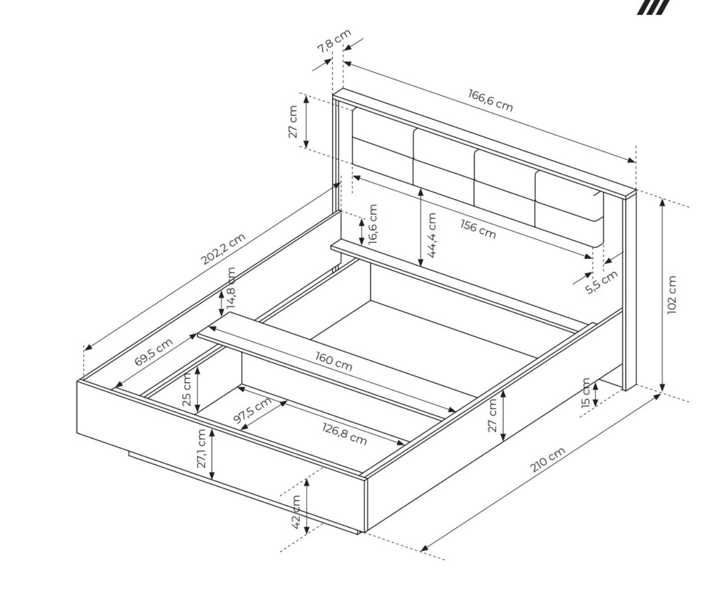 - Anhebung Die Matratze (160 x 200 cm) ist nicht im Lieferumfang enthalten,
