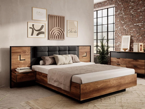 Bett mit Bettkasten GAFS Eiche kastanie+graphit