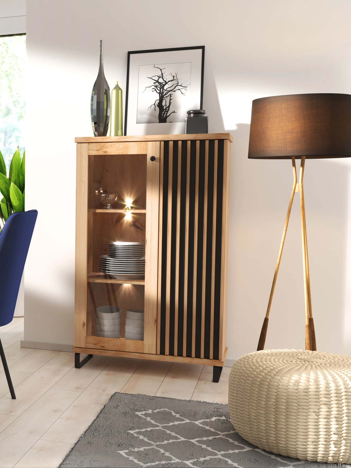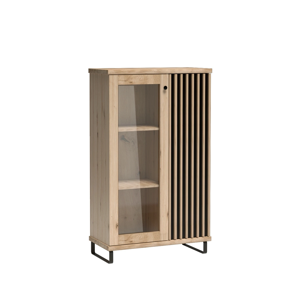 BORDO eiche, Gehärtetes Glas, Fronten gefräst, Loft Vitrine