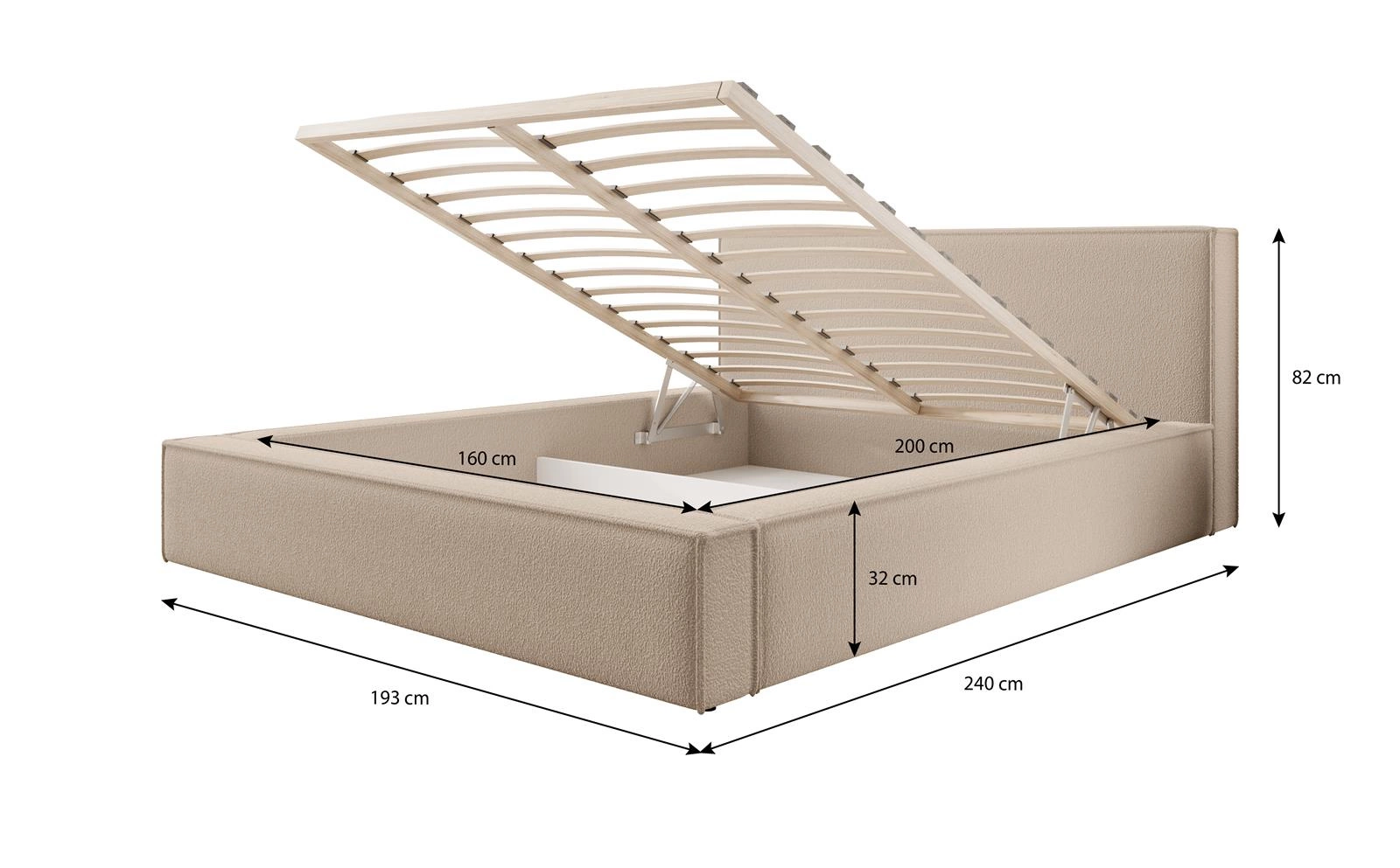 Boucle-Bett mit Stauraum 180x200 ASTI CREME