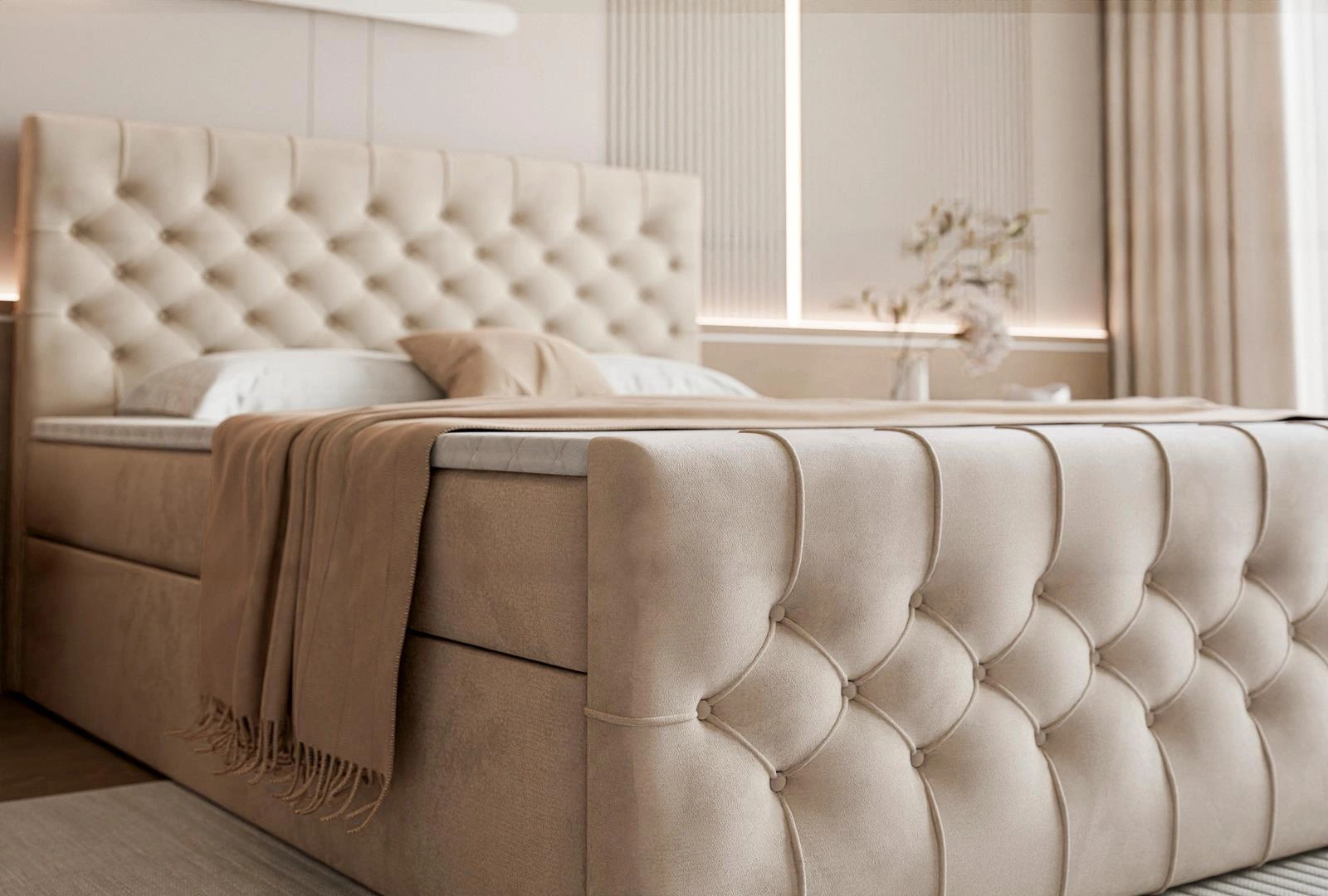 Boxspringbett mit hochwertigem Bezug Beige 160x200 MIAMI