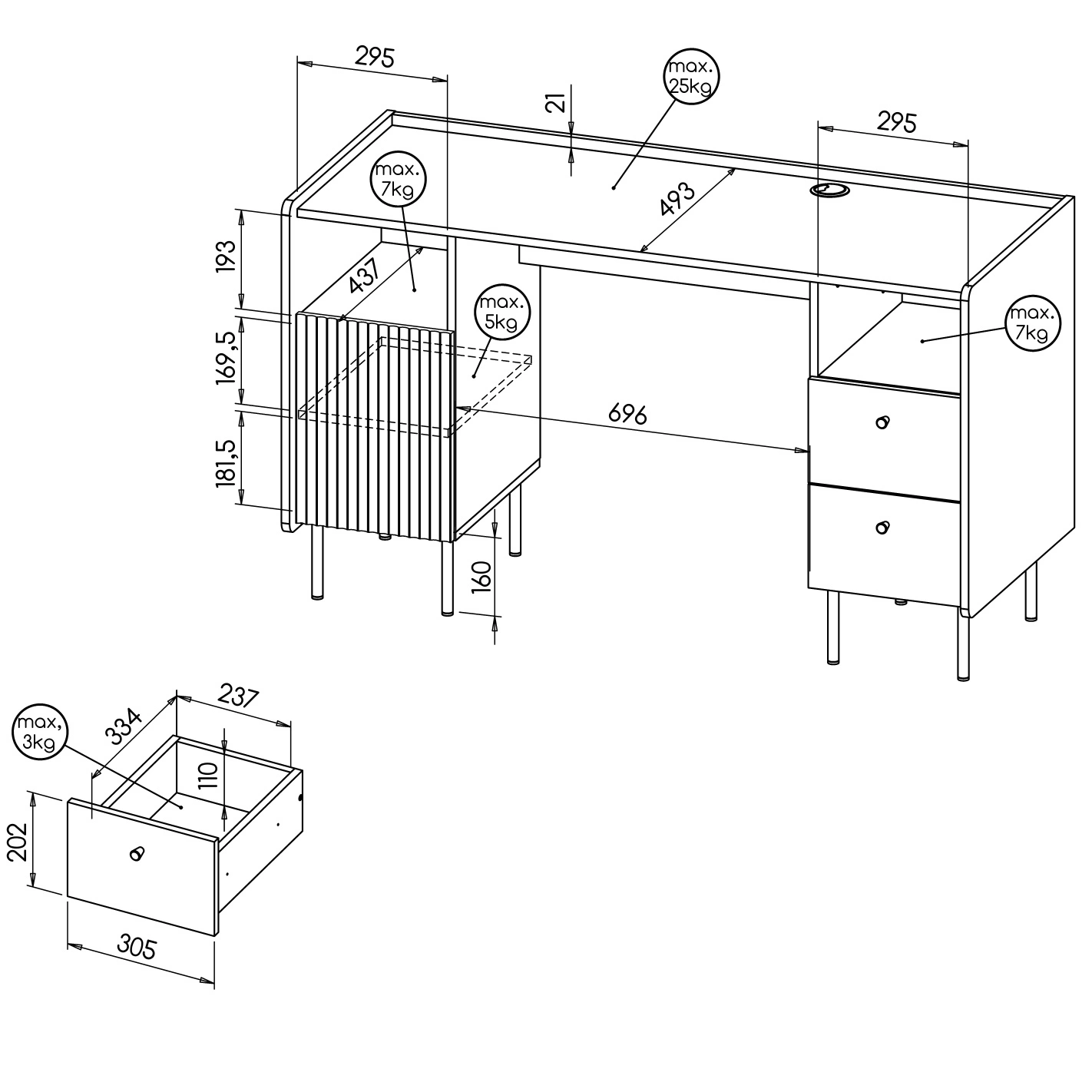 Bürotisch geräumig mit gerillte Front COMO Nussbaum