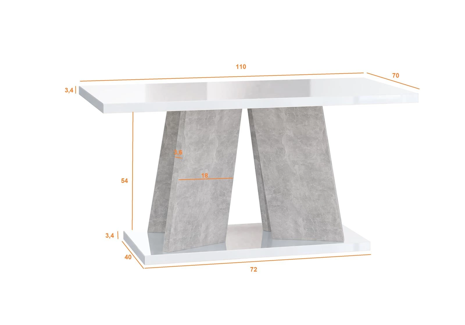 Couchtisch Sofatisch SANA Weiß Hochglanz+Stone