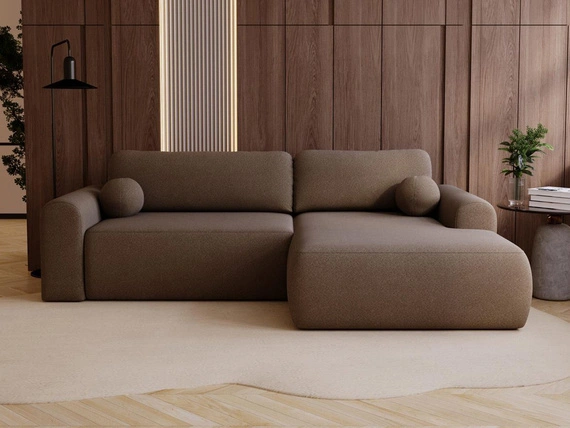 • Luxuriöse Designer Ecksofa Aura mit seinen elefanten, abgerundeten Kanten ist das perfekte Möbelstück für anspruchsvolle Kunden. Farbe braun, seite rechts