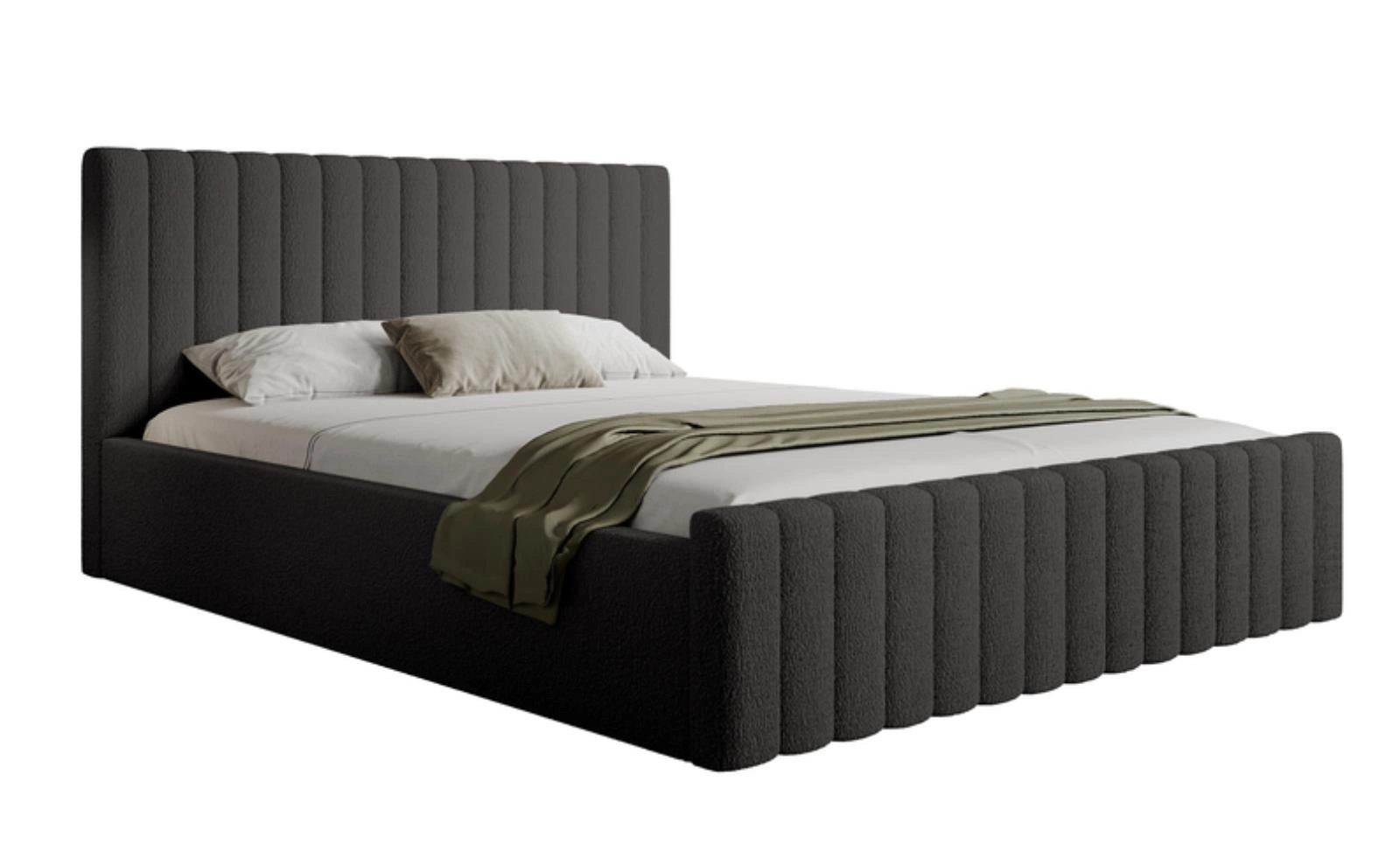 Doppelbett Bouclé mit Bettkasten 180x200 Graphit