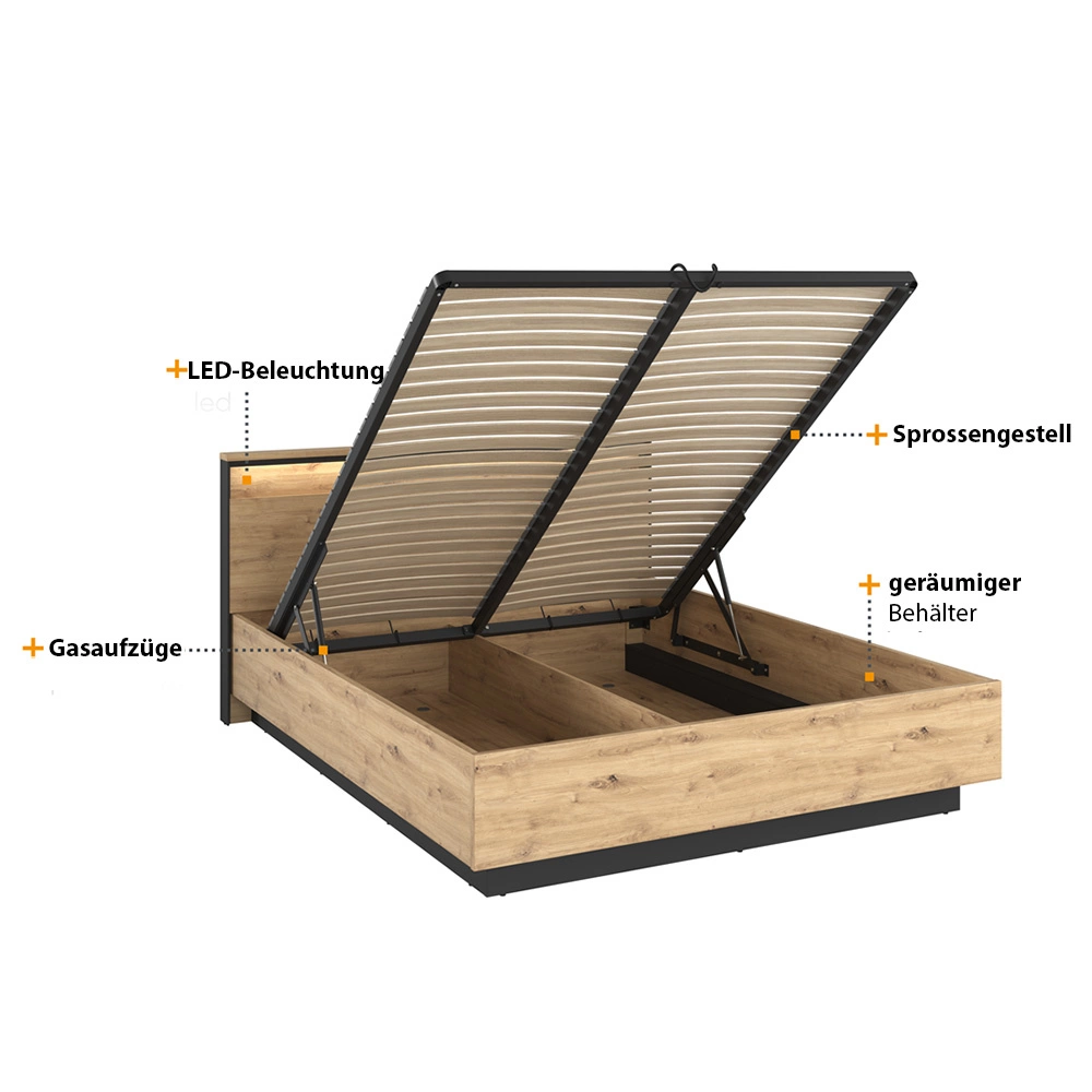 Doppelbett mit Lattenrost LIMA Eiche artisan