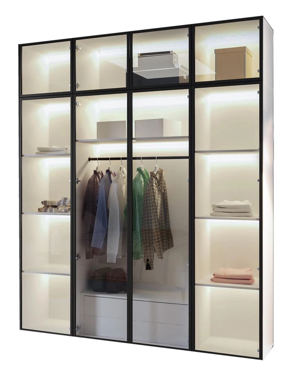 Drehtürenschrank mit Aufsatz Glasfront Weiß STELLS