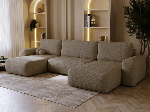 - Moderne Sofa U-Form Tedis überzeugt durch ihre weiche Bouclé Teddy Stoff. Schau dir das Dunkelbeige Modell an!