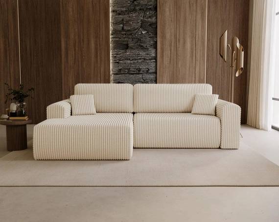 Ecksofa Cordstoff Komfort Hellbeige