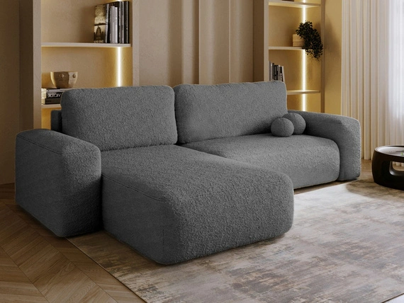 - Großes Tedis L-Form Ecksofa links in Bouclé - mit Schlaffunktion und Stauraum. Erhältlich in vielen modischen Farben. Schau dir die graphit Version an!