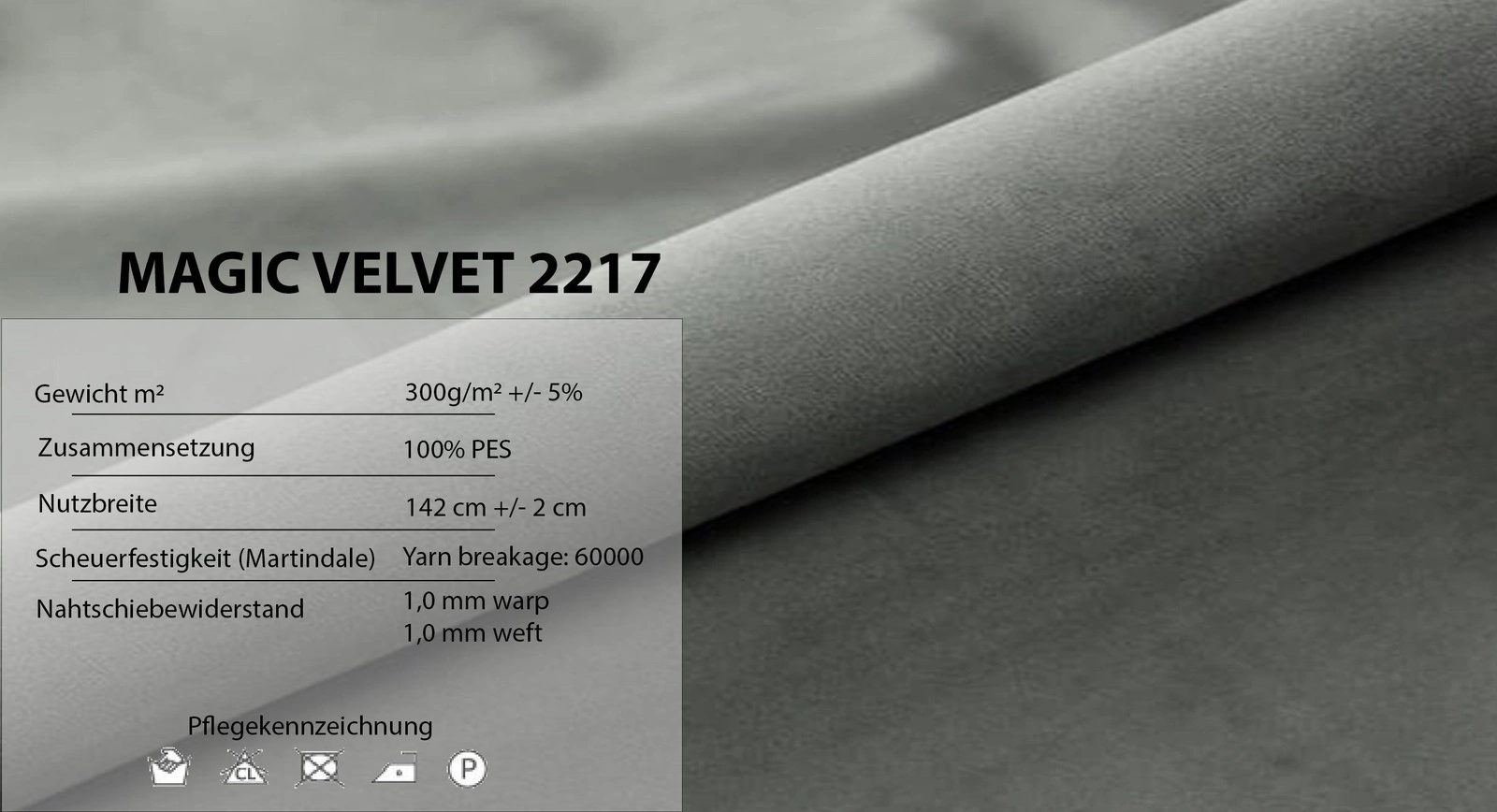 Magic velvetEs handelt sich um einen samtigen Stoff, der außergewöhnlich weich und angenehm im Griff ist. Die Materialien schattieren eindrucksvoll und reflektieren subtil das einfallende Licht. Der Stoff ist samtig und fließend, sodass er neben Polstermöbeln auch auf dekorativen Kissen Verwendung finden kann.