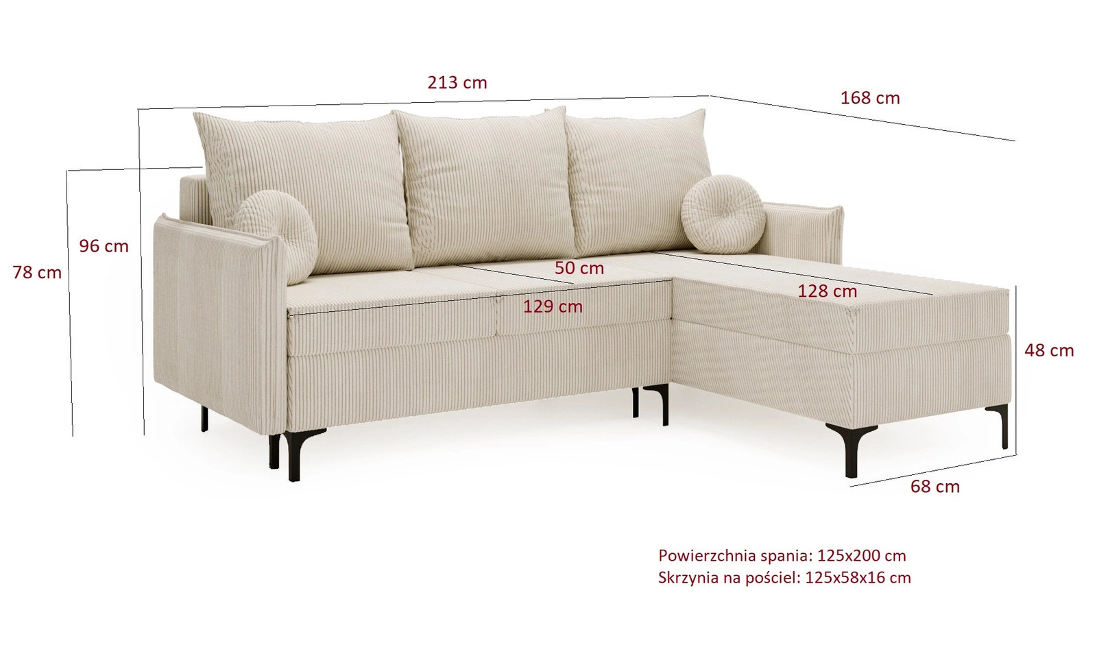 - Das LEO Ecksofa verfügt über eine Schlaffunktion, mit der Sie es schnell und einfach in ein bequemes Bett verwandeln können. Die Ecke ist auch mit einem praktischen Bettlakenbehälter ausgestattet, der diskret unter dem Sitz verstaut wird.