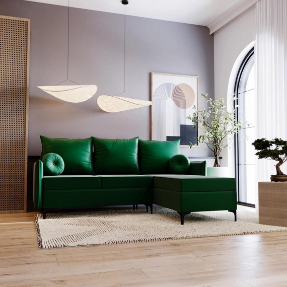 - Das LEO Ecksofa verfügt über eine Schlaffunktion, mit der Sie es schnell und einfach in ein bequemes Bett verwandeln können. Die Ecke ist auch mit einem praktischen Bettlakenbehälter ausgestattet, der diskret unter dem Sitz verstaut wird.