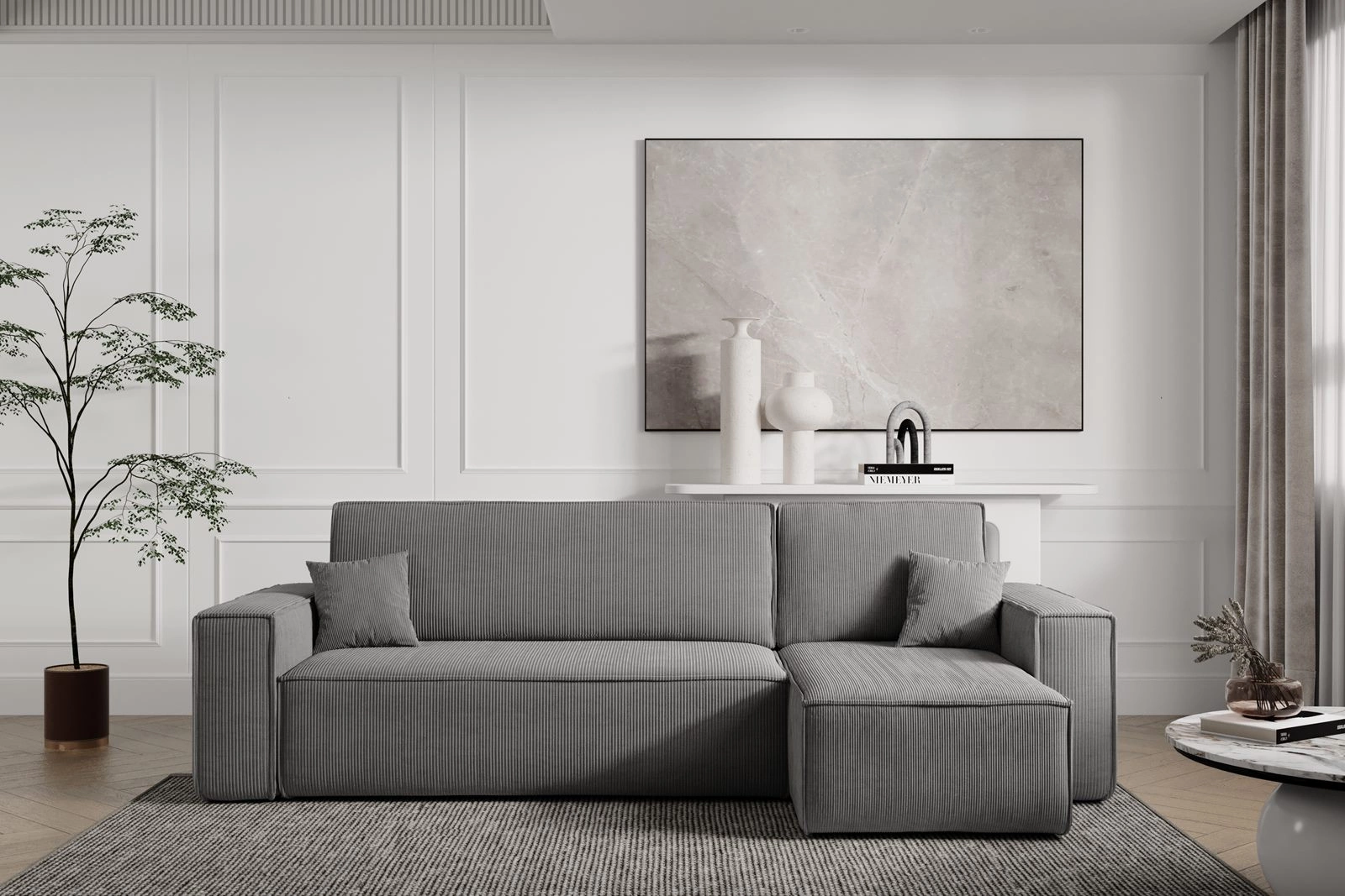 - Das KARL Ecksofa verfügt über eine Schlaffunktion, mit der Sie es schnell und einfach in ein bequemes Bett verwandeln können. Die Ecke ist auch mit einem praktischen Bettlakenbehälter ausgestattet, der diskret unter dem Sitz verstaut wird.