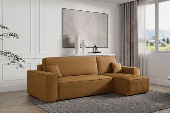 - Das KARL Ecksofa verfügt über eine Schlaffunktion, mit der Sie es schnell und einfach in ein bequemes Bett verwandeln können. Die Ecke ist auch mit einem praktischen Bettlakenbehälter ausgestattet, der diskret unter dem Sitz verstaut wird.