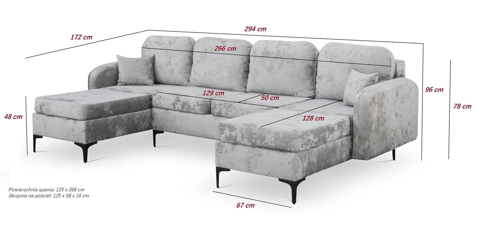 - Liegefläche: 125x266cm,