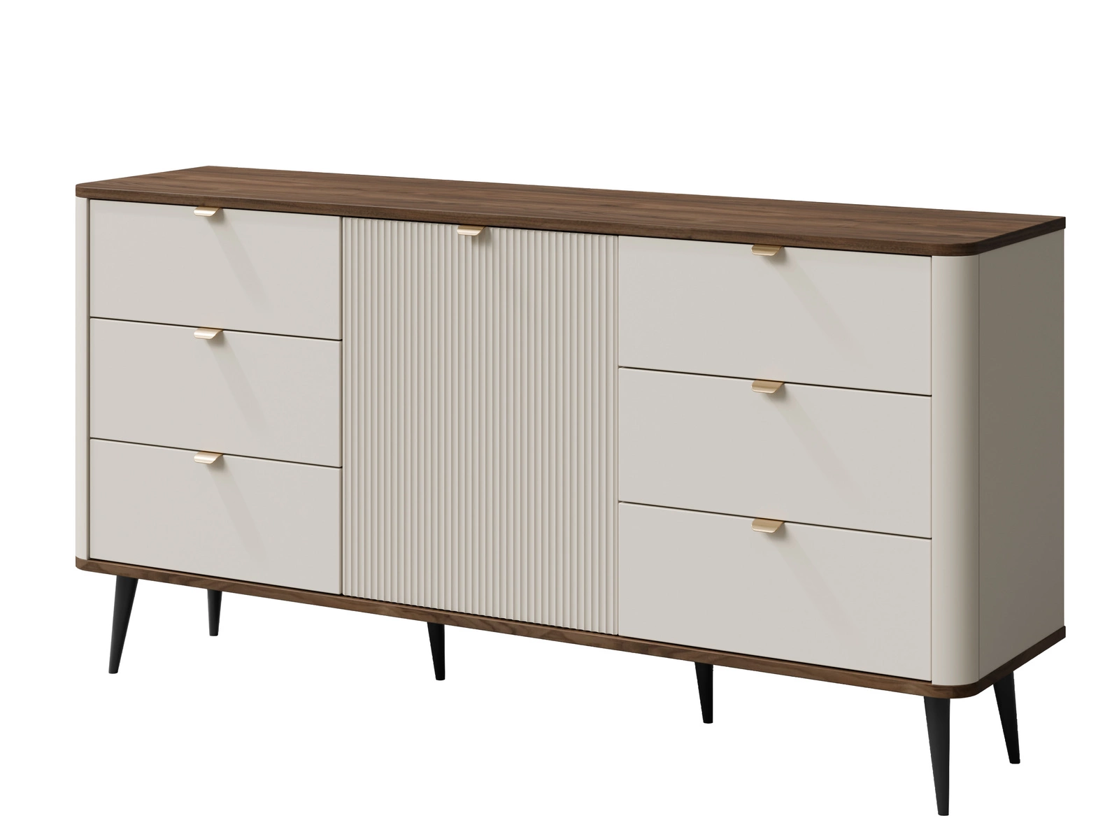 Elegante Kommode mit geriffelte Fronten LILIA Kaschmir + Nussbaum
