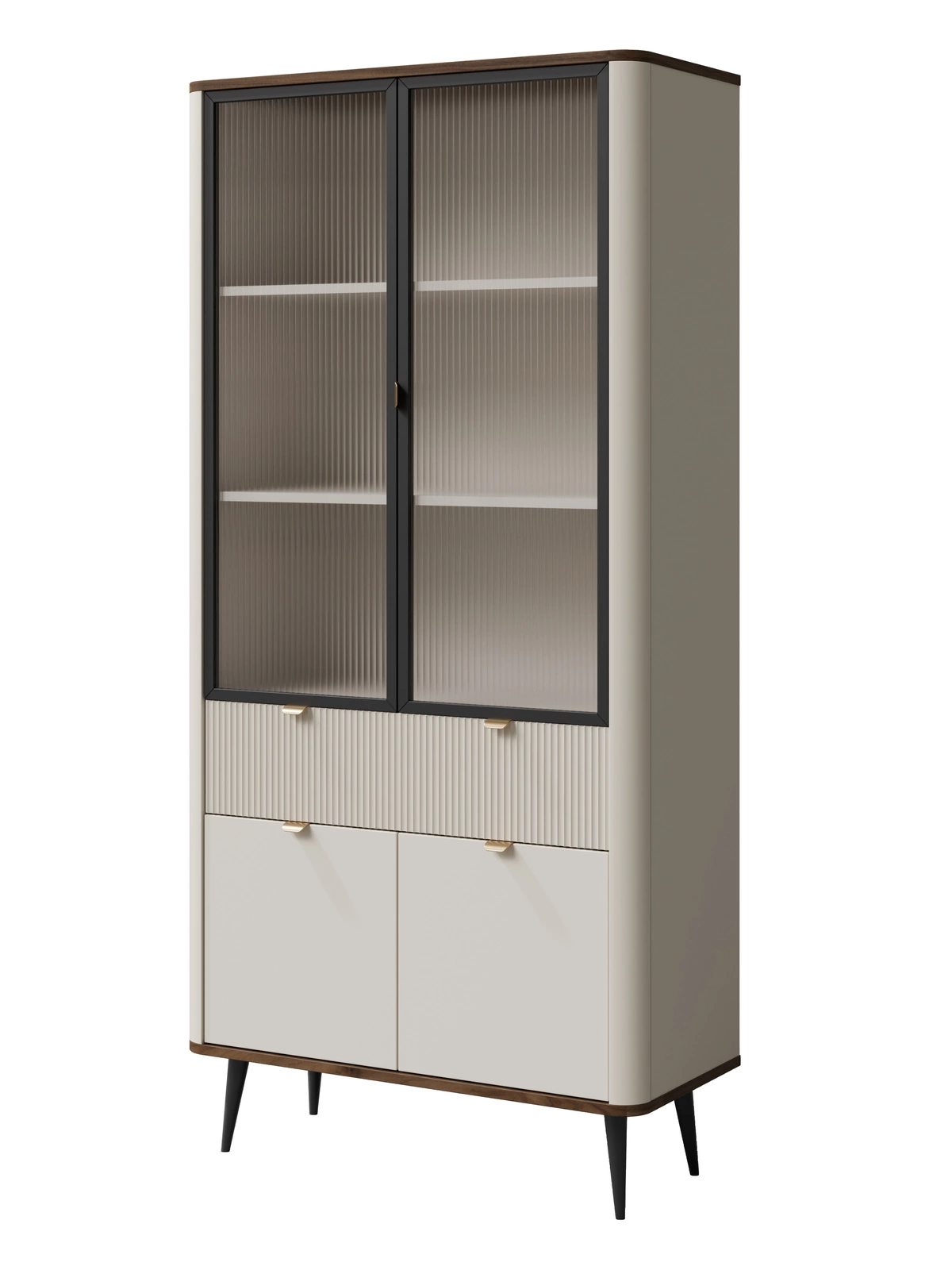 Elegante Vitrine mit Lamellen LILIA Kaschmir + Nussbaum