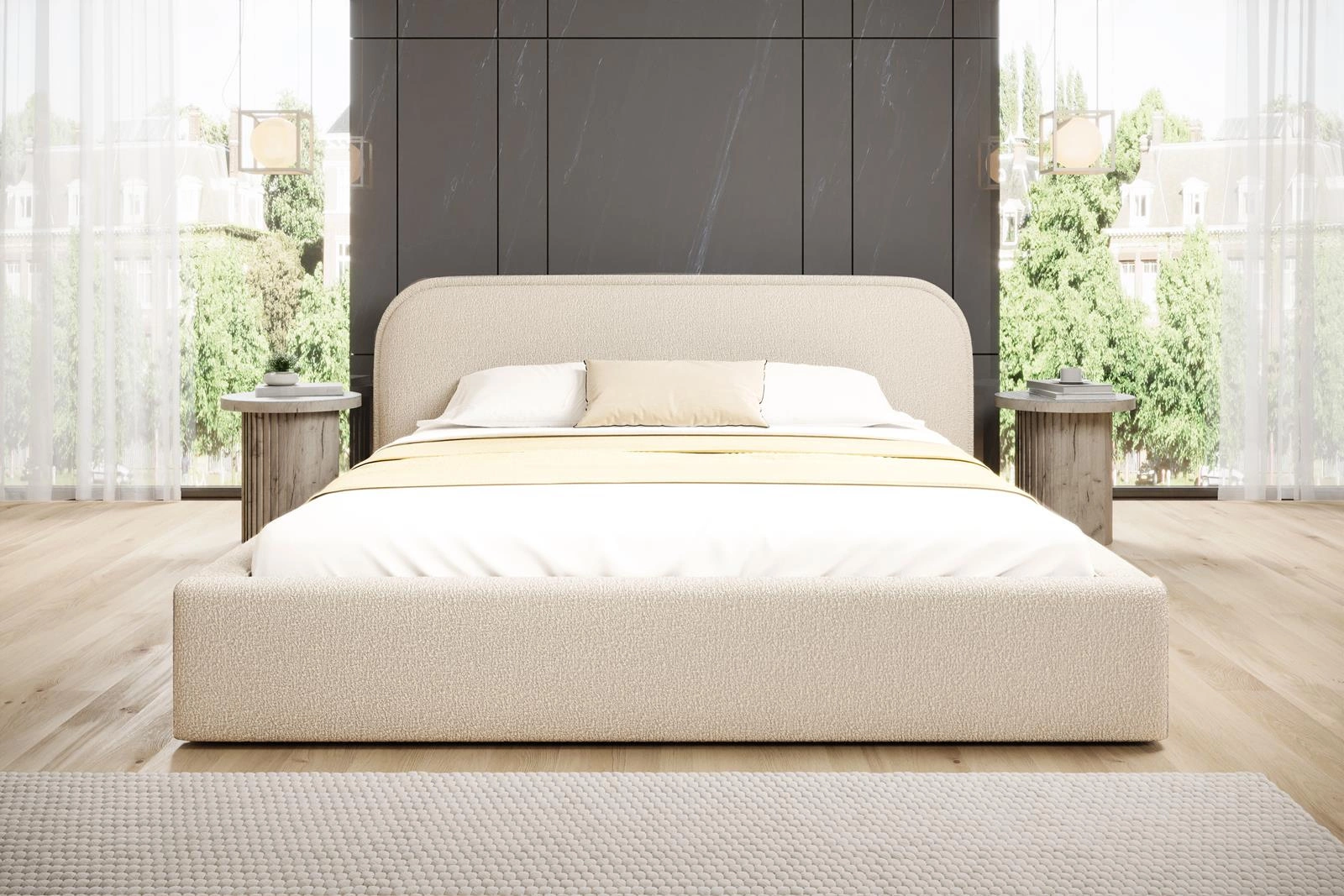 Elegantes Bett mit Kopfteil 160x200 Hellbeige