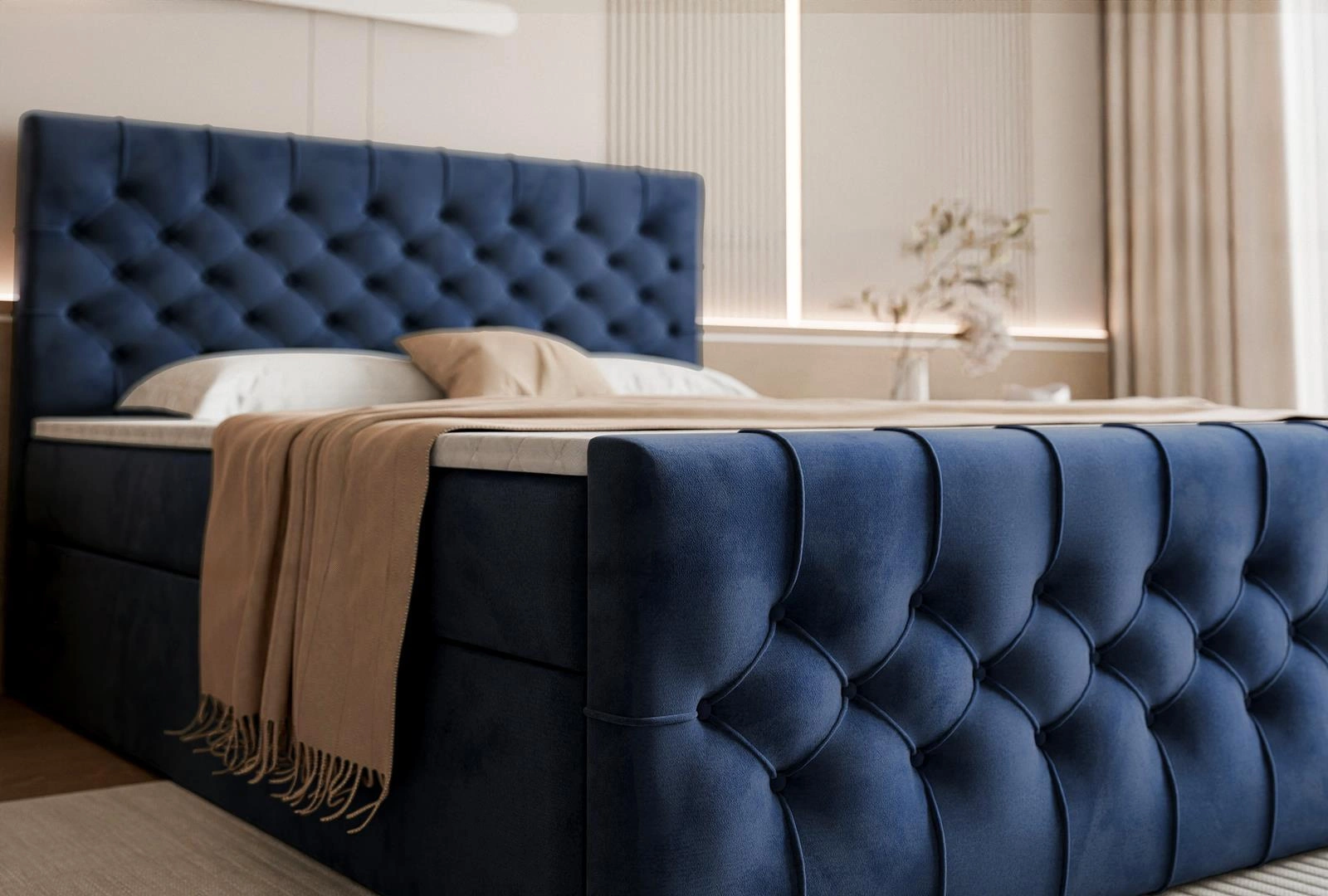 Elegantes Boxspringbett mit H3 Matratze Blau 160x200 MIAMI