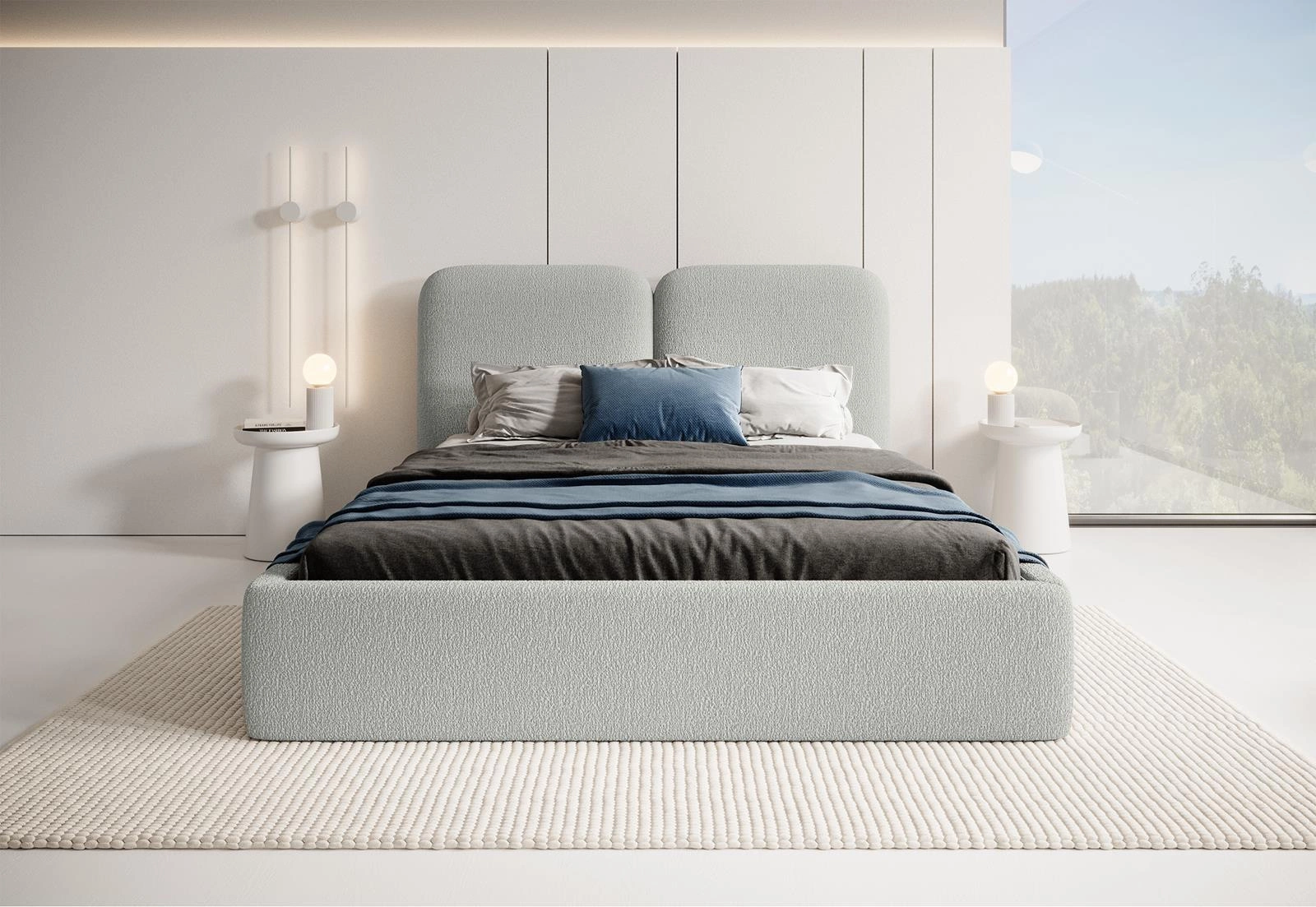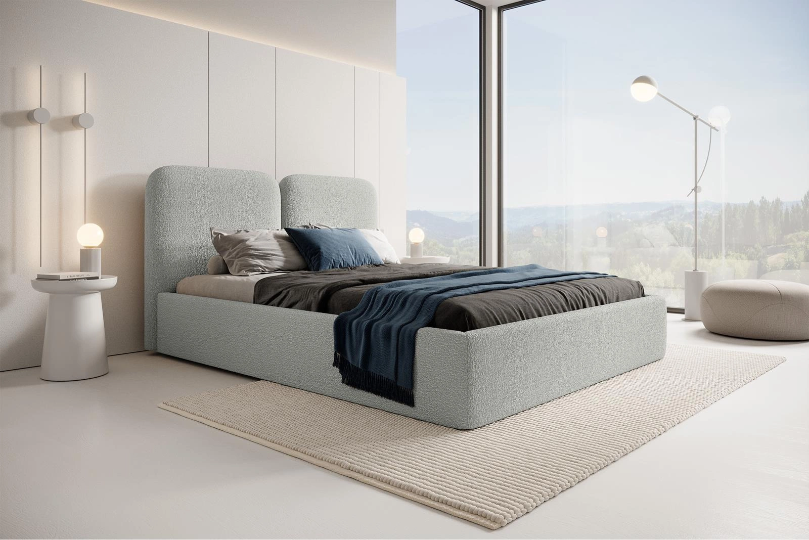 Elegantes Polsterbett Bouclé 120x200 Grau BUBBLE III