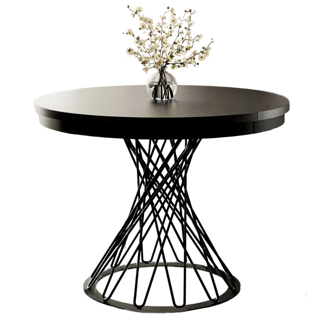 Esstisch Rund LUKO 100–140 Schwarz modern mit Metallbeinen
