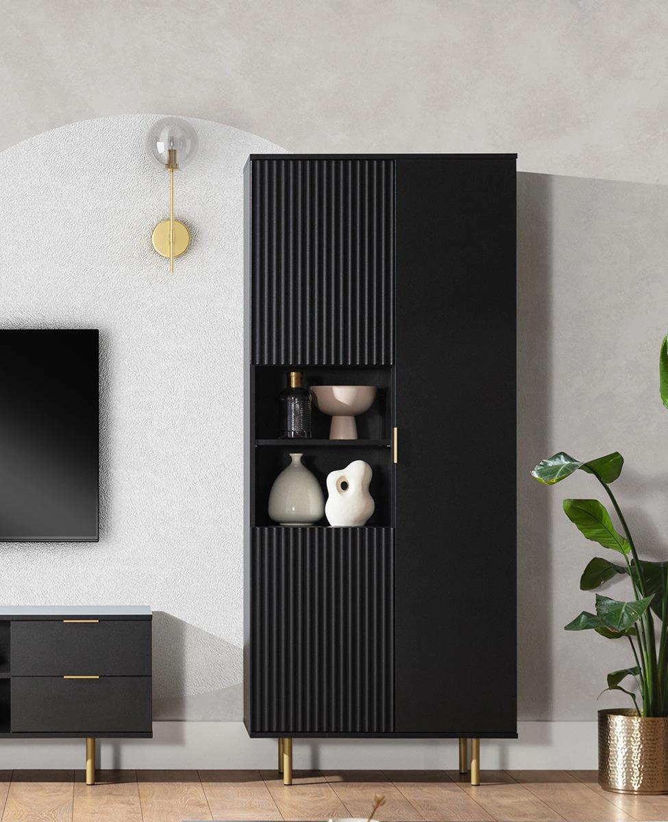 Fronten gefräst, 3 Drehtüren, elegantes Glamour-Regal