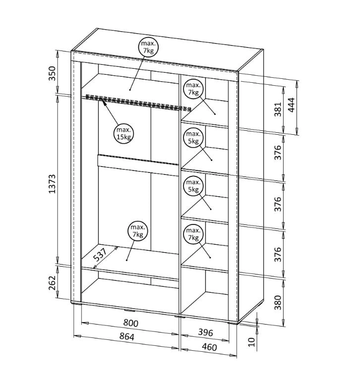 Garderobe mit 3 Türen und Spiegel TRENDS Schwarz